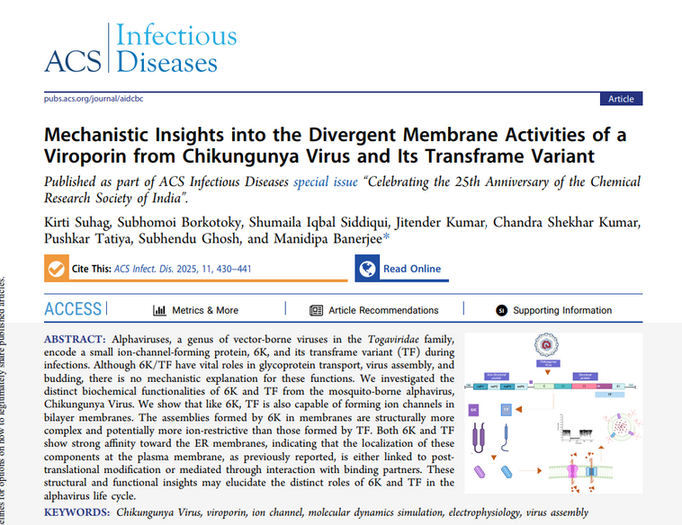 Using multidisciplinary approaches, we have identified the membrane-active components in Hepatitis A Virus (Shukla et al, 2014; Shukla et al, 2015), and elucidated the mechanism of host membrane breaching by viral lytic peptide in a model non-enveloped virus Flock House Virus (Bajaj et al, 2016). We are also studying the assembly and disassembly pathways of Chikungunya virus, HAV and FHV, and the interaction of HAV viral proteins with immune components in host cells. Besides investigating viruses in the context of their pathophysiology, we are also interested in exploiting small non-enveloped viruses for use as bionanoparticles for therapeutic delivery.